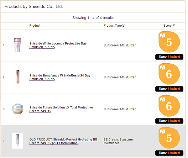 成果發現EWG上並沒有專項檢測過今天要談的商品,但資生堂有4項商品已接管過檢驗,惋惜的是~~~都沒有綠標好寶寶啊,滿是品級5~6的黃標(不安全)商品翻譯