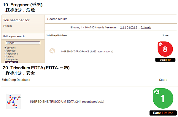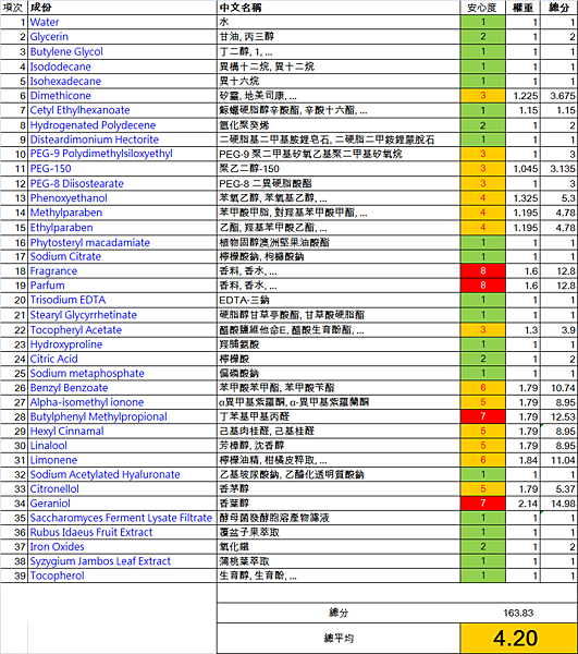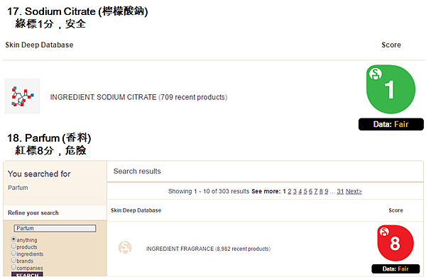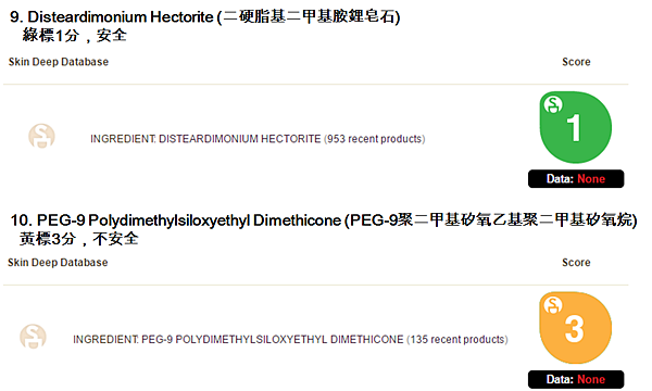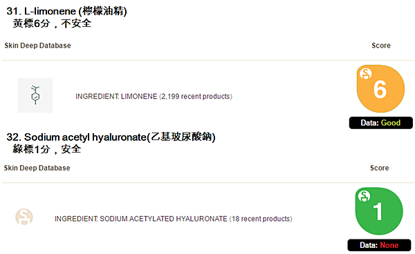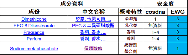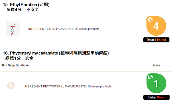 這邊又到了把每種成分拿去Skin Deep搜檢的時候了,感覺孤單空虛冷的朋侪可以跳過這段沒關係,直接滑鼠拉下去看結果吧~