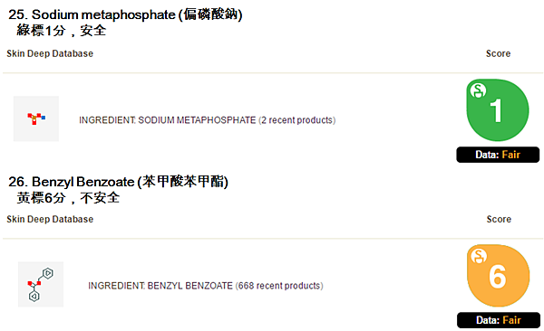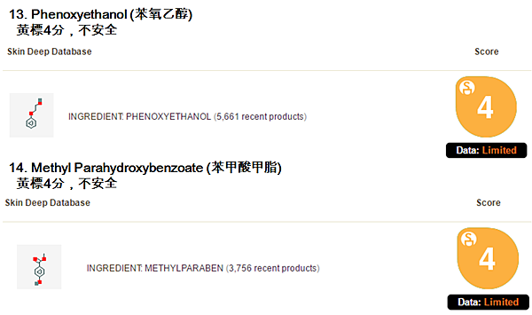 不外這邊的安心度與EWG有差別的地方,大叔以EWG為主。