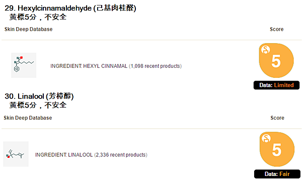 我們從香料的評分可以看到,幾乎都是不平安的黃標乃至是危險的紅標翻譯