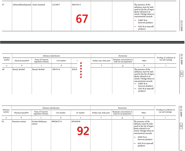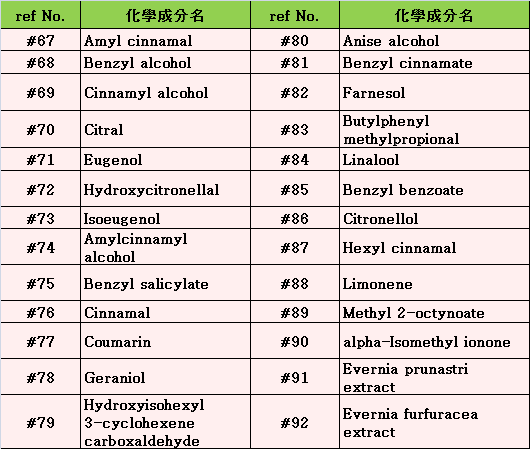 看到這邊確認這26種規範在regulaton (EC) No 1223/2009這份文件之中,於Annex III的第67~92項翻譯