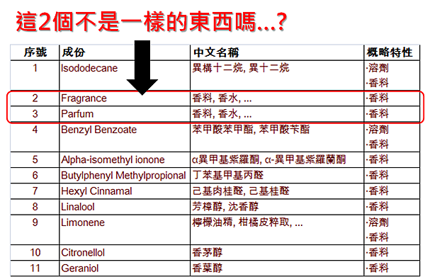 讓我們回到成份表哪裏,眼尖的朋侪會發現這支乳霜的香料成分也太多了吧!